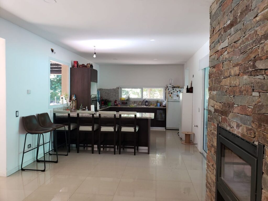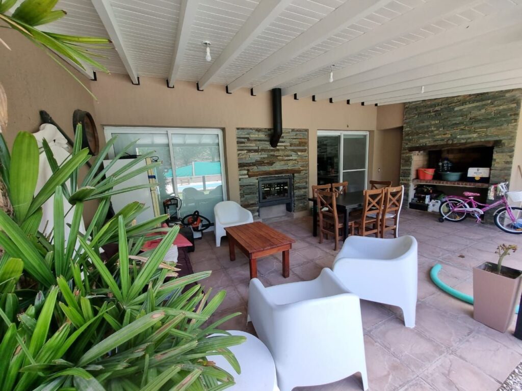 La casa tiene 3 habitaciones una con vestidor, Dos baños, Cocina comedor, Lavadero, Living con hogar Ñuke doble cara a la galería, Porcelanato, ventanas moderan blanco doble vidrio, Calefacción central. Patio parquizado con pileta.